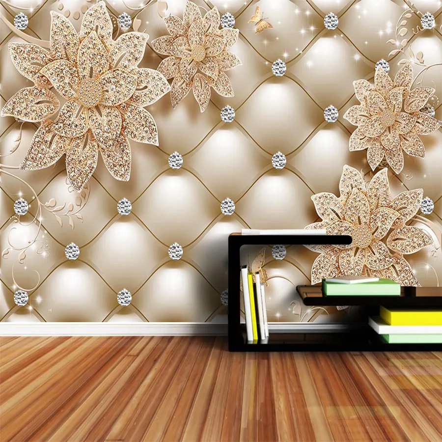 Shinehome Floral Soft Roll Diamond Jewelry Wallpaper 3d For Walls